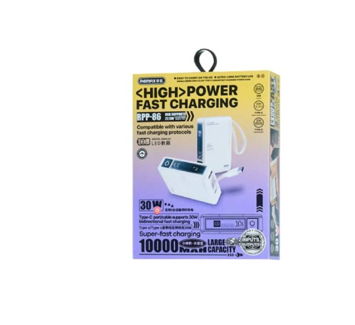 REMAX RPP-86 10000mAh Wingle Series Type-C Cabled Fast Charging Power Bank (Beige)