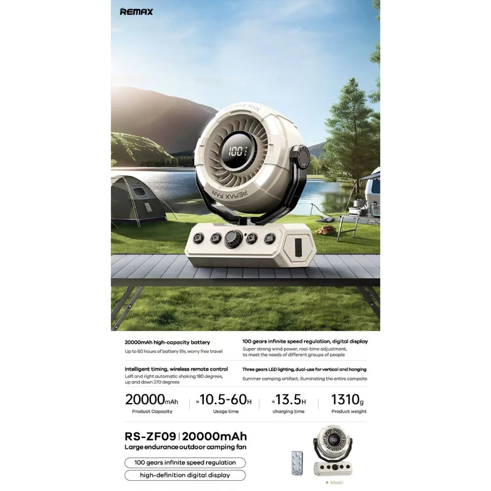 REMAX RS-ZF09 Outdoor Camping Fan (Khaki)