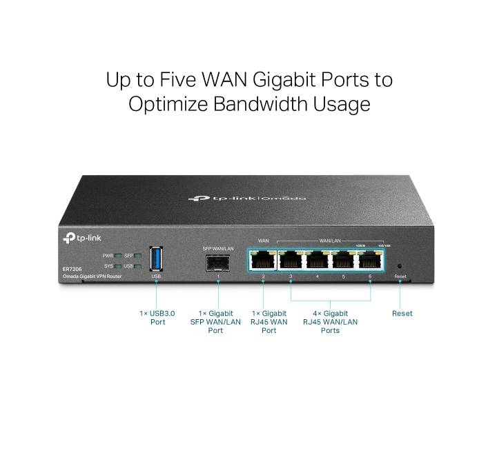 - Up to 5 WAN Ports: Gigabit SFP WAN port and gigabit RJ45 WAN port optimize bandwidth usage.