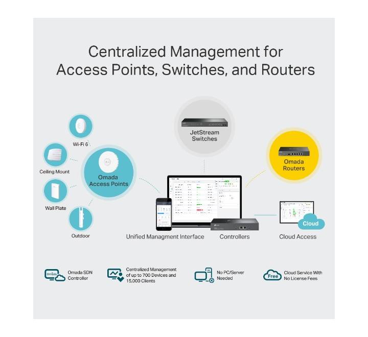 - FEATURE: Cloud Access, Centralized Management for up to 500 Omada EAPs,