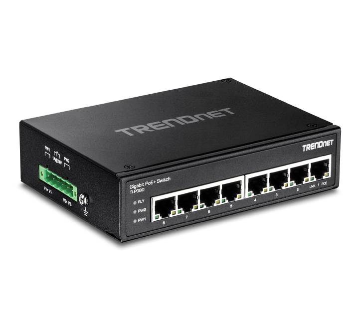 Trendnet 8-Port Hardened Industrial Gigabit PoE+ DIN-Rail Switch (TI-PG80)